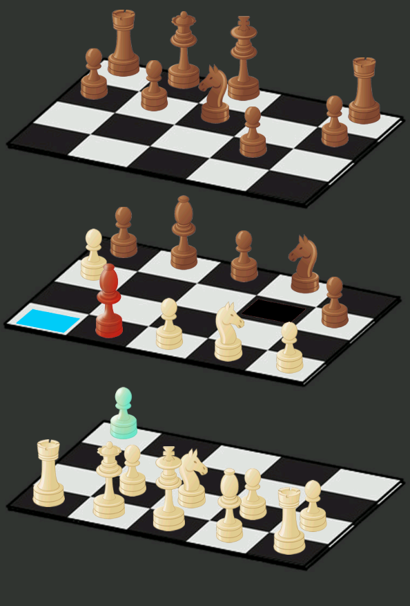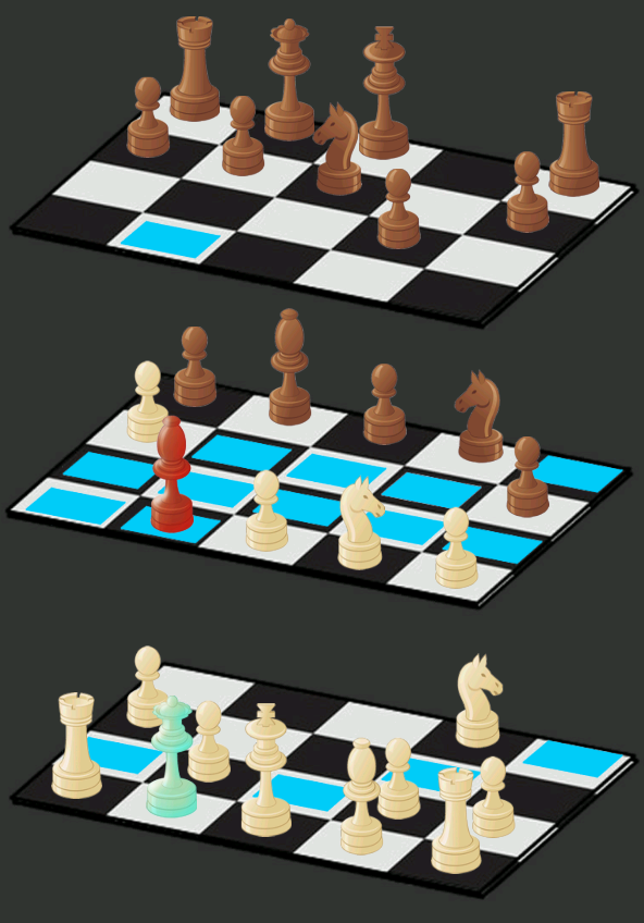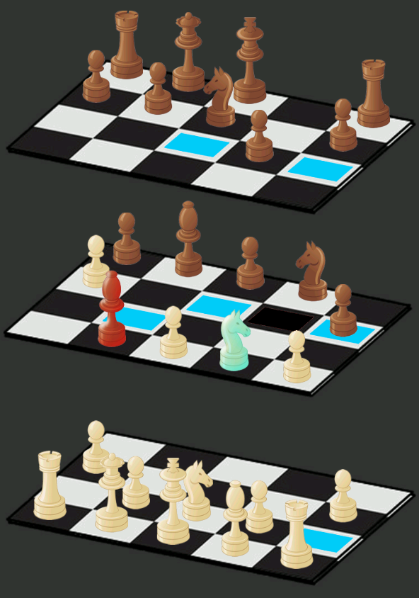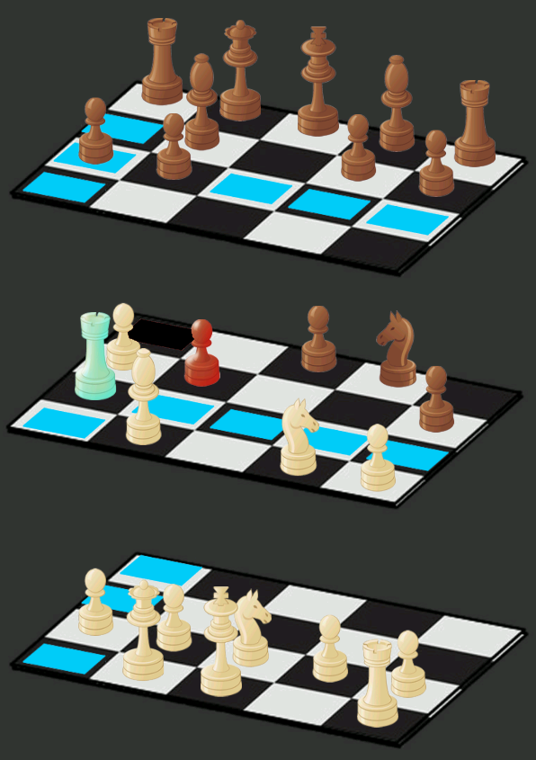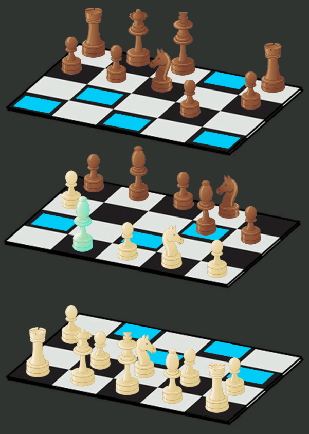 *** Remember: With the exception of the Pawn, all other pieces can move up or down to a new level in one move. Black is not restricted to just moving down, nor is White just restricted to moving up.